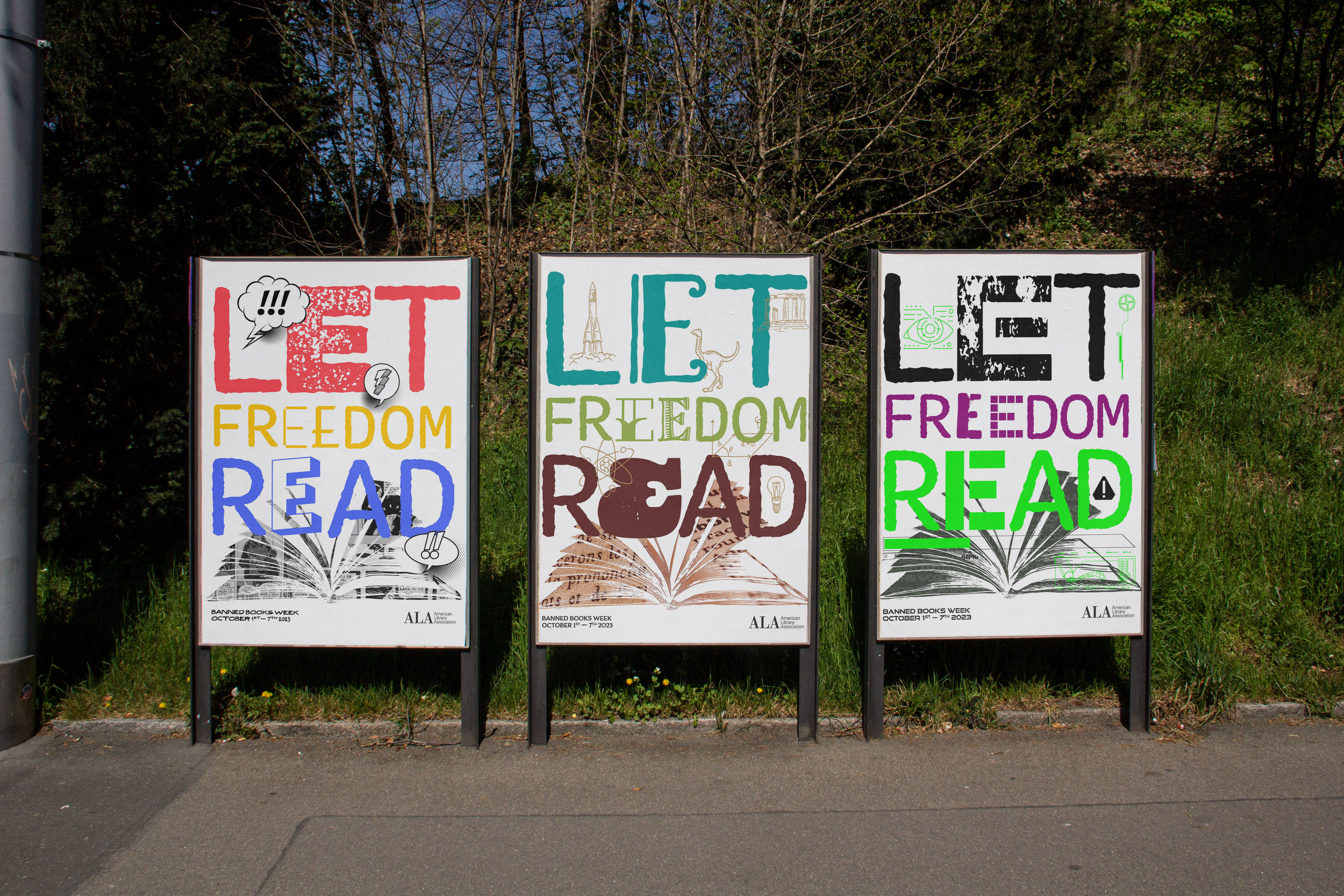 This project for the American Library Association by Landor & Fitch for their Banned Books campaign centered on posters using a typographic treatment hinting at individual letters representing different literary genres.