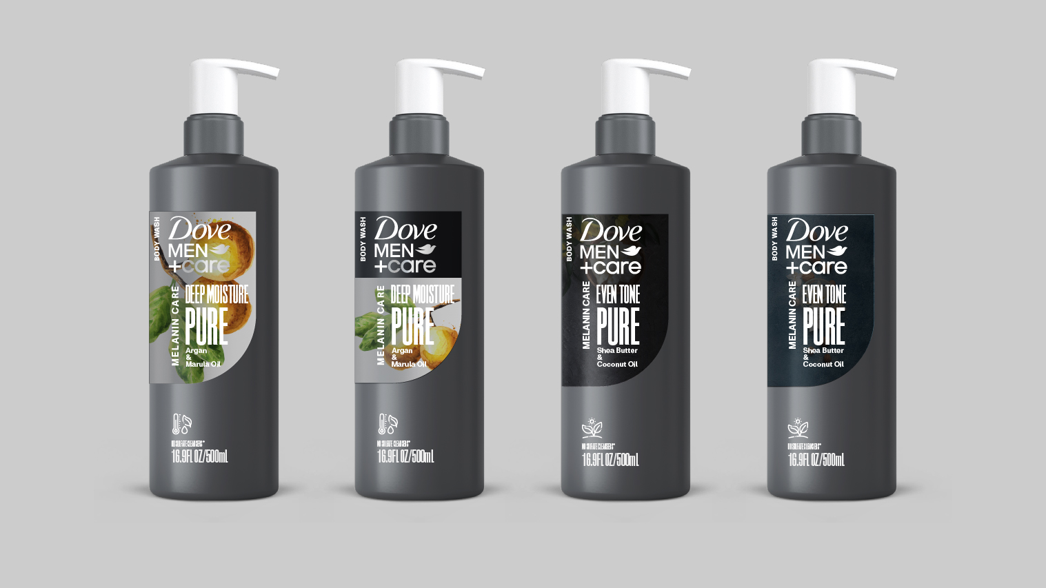 for Dove, I worked on typography-focused concepts for the new Dove Men+Care Melanin Care body wash product line.
