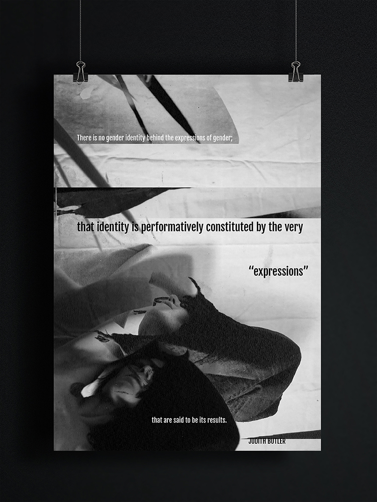 This is a pair of posters inspired by a quote from the book “Gender Trouble” by Judith Butler. I focused on using my analogue/digital layering practice centering on 35mm photographs to invoke feelings of ambiguity and fluidity.