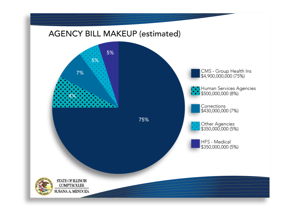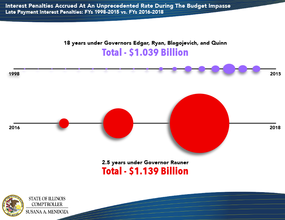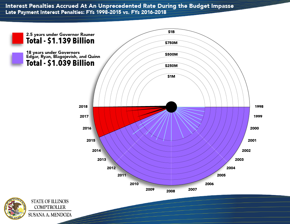 This is a collection of infographics detailing the data visualization of the Illinois State Comptroller's Office. These were designed to clearly and vibrantly illustrate some of the finer points of the current financial positions.